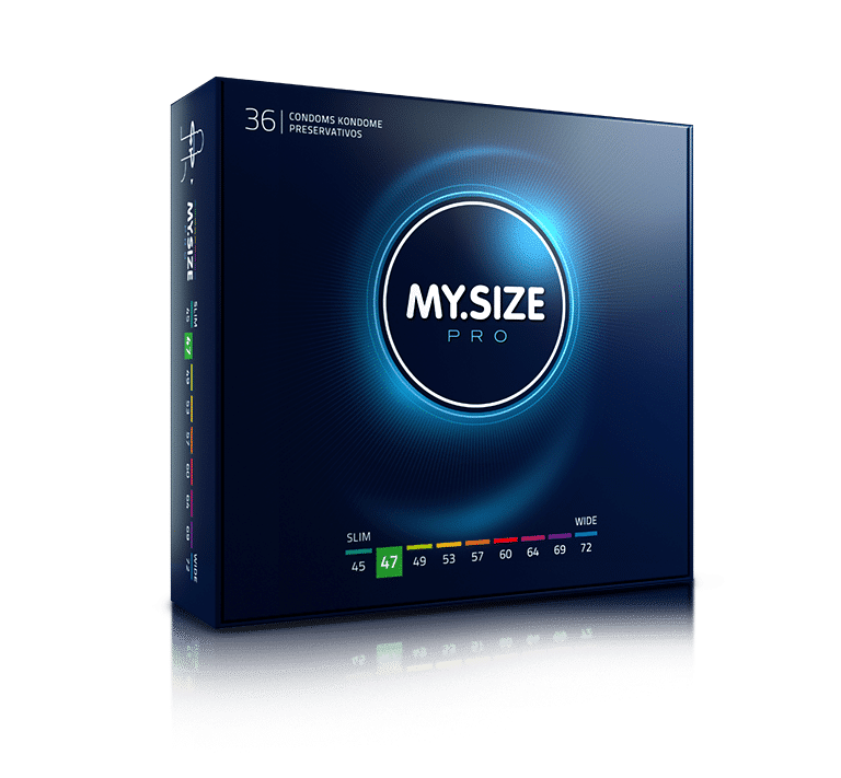 Best suited for penis with girth up to 10cm (erect). MySize is a German condom brand that has done a lot of research on condom sizes. A well-fitting condom is important for safety, but it is also more comfortable for him to wear. MySize 47 are condoms with a nominal width of 47mm, and a length of 160mm. Narrower condoms are a bit tighter so this condom does not slip off during intercourse.